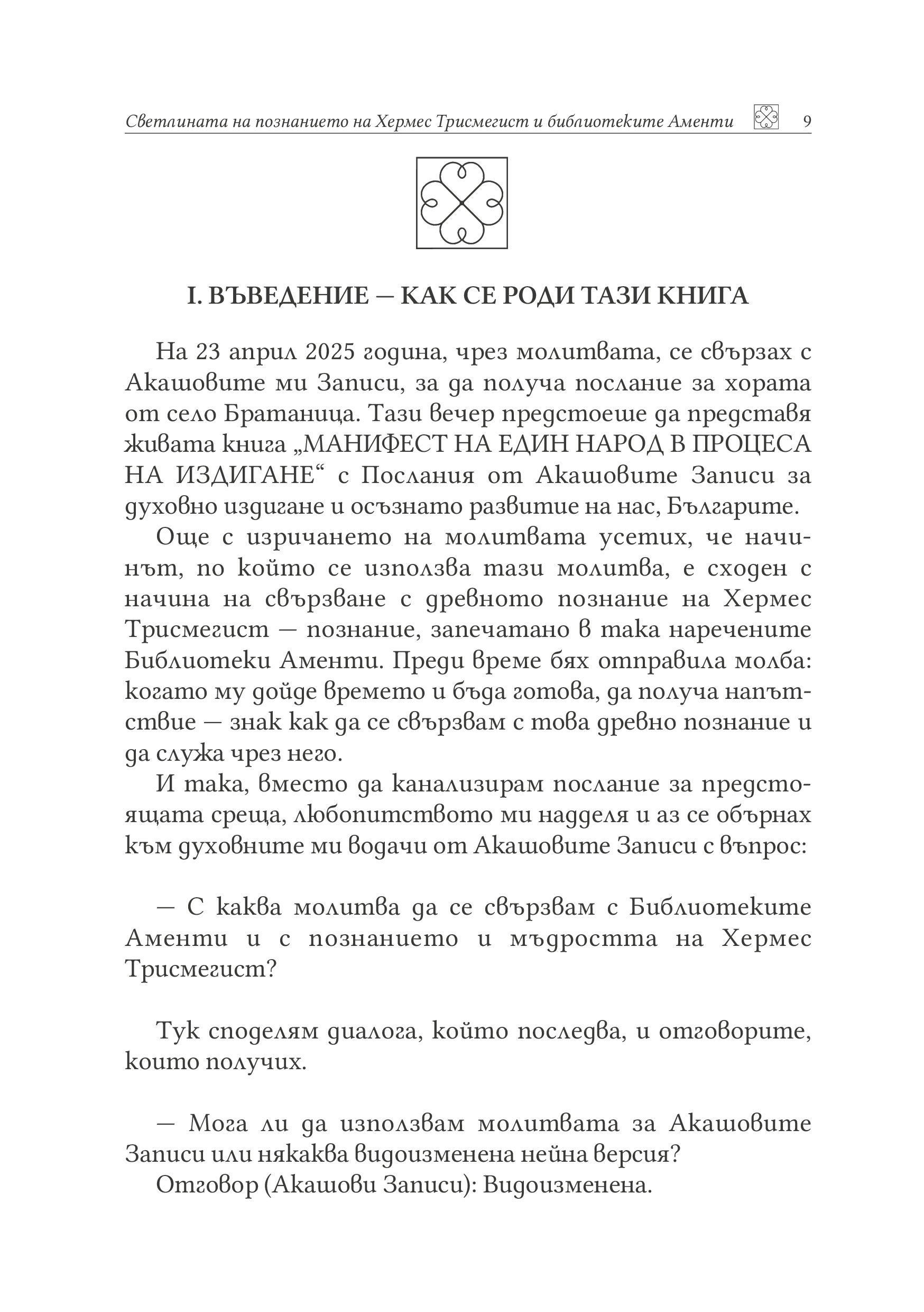 Живата книга „СВЕТЛИНАТА НА ПОЗНАНИЕТО НА ХЕРМЕС ТРИСМЕГИСТ И БИБЛИОТЕКИТЕ АМЕНТИ“