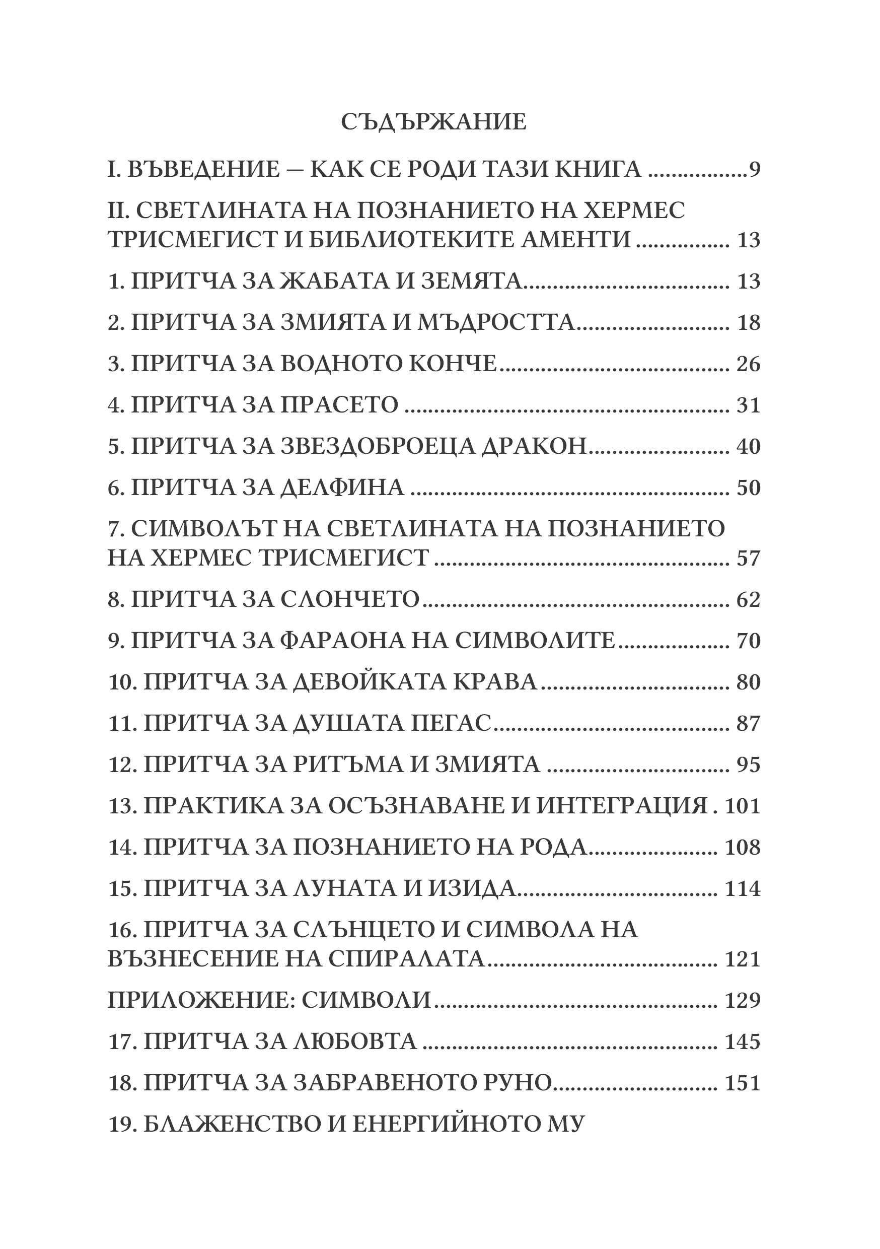 Тази духовна творба — книга с мъдростта на Хермес Трисмегист — събира притчи и канализирани послания от древното познание, създадени като преживяване за вътрешен Мир и осъзнатост.